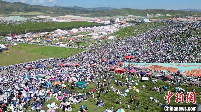 8月4日,民眾在當(dāng)周草原浪山聚會(huì)。當(dāng)日,第22屆九色甘南香巴拉旅游藝術(shù)節(jié)在甘肅省甘南藏族自治州當(dāng)周草原開幕。人們身著節(jié)日盛裝載歌載舞、歡聚一堂,馬隊(duì)巡游、千人鍋莊舞等活動(dòng)精彩上演。九色甘南香巴拉旅游藝術(shù)節(jié)既是民眾浪山聚會(huì)的節(jié)日盛會(huì),也是展現(xiàn)發(fā)展成就、擴(kuò)大對(duì)外開放的重要窗口,更是展示民俗文化、促進(jìn)廣泛交往交流交融的有效載體。(無人機(jī)照片)中新社記者 九美旦增 攝
