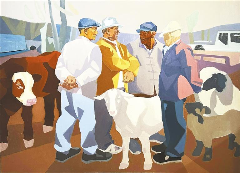 《和風》系列作品取材于禮縣鹽官鎮(zhèn)騾馬市場逢集時交易的場景。幼時,我經常隨父親去鹽官騾馬市場趕集,對這個場景熟悉且親切。也正因為如此,我對這個題材有著難以割舍的情愫,總是忍不住想通過畫筆呈現(xiàn)這一記憶。