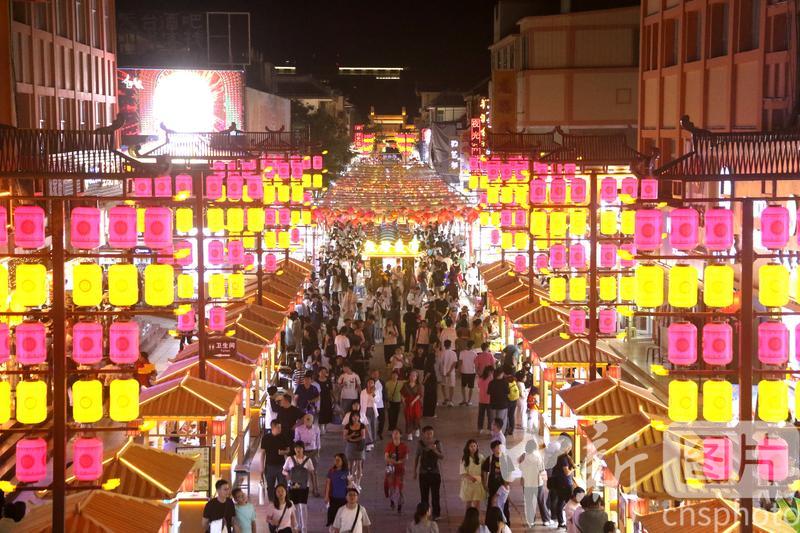 2024年8月17日,游客在甘肅省敦煌夜市游覽。進(jìn)入暑期以來,被譽(yù)為敦煌“夜景圖”的敦煌夜市日均客流量達(dá)3萬人次以上,游客在這里賞景游覽休閑,品嘗地方名優(yōu)小吃,選購敦煌特色文創(chuàng)產(chǎn)品,感受敦煌文化魅力,夜經(jīng)濟(jì)活力四射。中新社發(fā) 張曉亮 攝