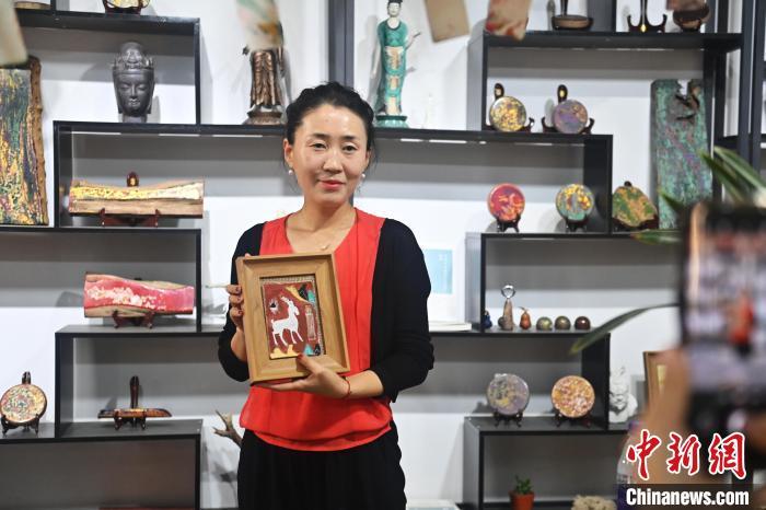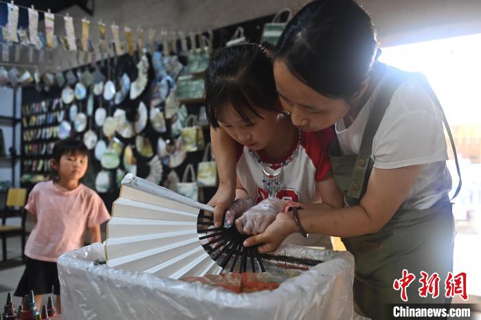 8月20日,甘肅敦煌莫高里工匠村內(nèi),學員展示研學成果。工匠村開設了泥板畫、彩繪、雕塑制作、剪紙、農(nóng)耕體驗等課程,現(xiàn)已發(fā)展成為一個集敦煌文化講堂、壁畫書法研習、美術設計、彩塑制作教學、篆刻藝術、傳統(tǒng)釀酒體驗、農(nóng)業(yè)產(chǎn)業(yè)發(fā)展等于一體的多功能實訓基地。中新社記者 李亞龍 攝