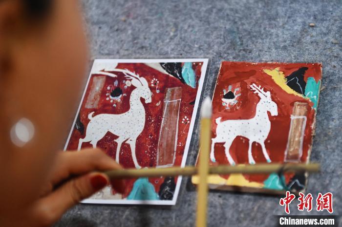 8月20日,甘肅敦煌莫高里工匠村內(nèi),學員體驗敦煌文化研學課程。工匠村開設了泥板畫、彩繪、雕塑制作、剪紙、農(nóng)耕體驗等課程,現(xiàn)已發(fā)展成為一個集敦煌文化講堂、壁畫書法研習、美術設計、彩塑制作教學、篆刻藝術、傳統(tǒng)釀酒體驗、農(nóng)業(yè)產(chǎn)業(yè)發(fā)展等于一體的多功能實訓基地。中新社記者 李亞龍 攝