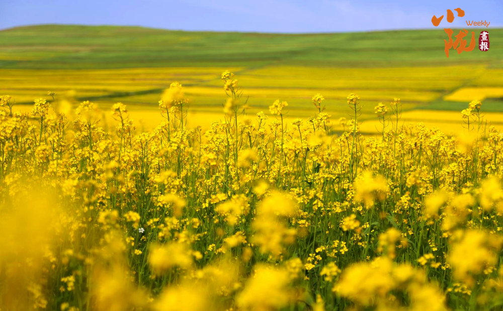 黃燦燦的油菜花鋪蓋在逶迤的山坡上,染盡山野,與此起彼伏的祁連山脈、古樸的民舍、一望無際的田野,共同繪就了一幅極具藝術(shù)感的“油畫”。