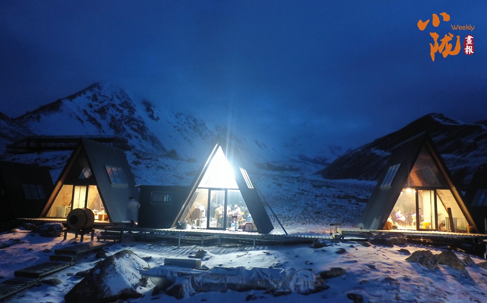 爬山的朋友累了可以在小木屋里喝杯茶歇歇腳。小木屋的保暖隔冷效果很棒,哪怕室外冰天雪地,里面的溫度非常暖和。
