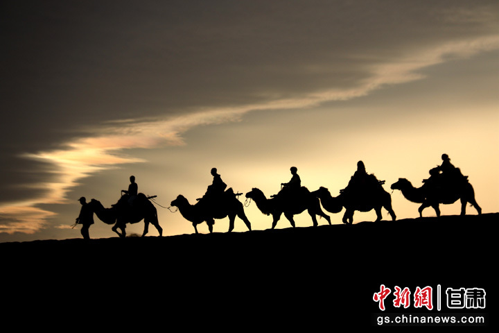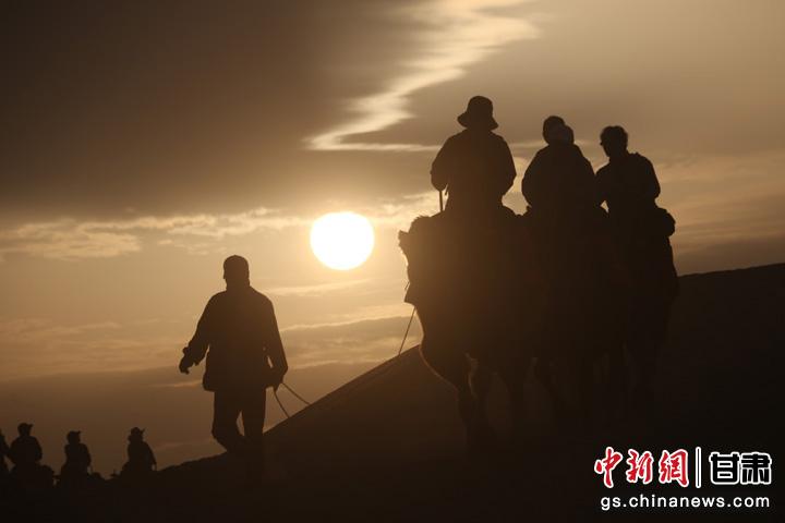 9月1日清晨,游客走進甘肅省敦煌市鳴沙山月牙泉景區(qū),乘騎駱駝欣賞大漠風(fēng)光,體驗絲路風(fēng)情。