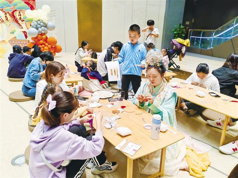 活動(dòng)現(xiàn)場,甘肅簡牘博物館根據(jù)中秋嫦娥的故事,結(jié)合館藏文物“兔子木簡”和簡牘博物館文創(chuàng)玩偶“簡龍”的原型,分別設(shè)置了縫制月餅香囊、繪兔簡、尋找神獸三道關(guān)卡,通過完成任務(wù)獲得“仙丹碎片”,最終點(diǎn)亮宮燈,幫助嫦娥重回廣寒宮。新穎獨(dú)特的活動(dòng),吸引了不少市民參加。