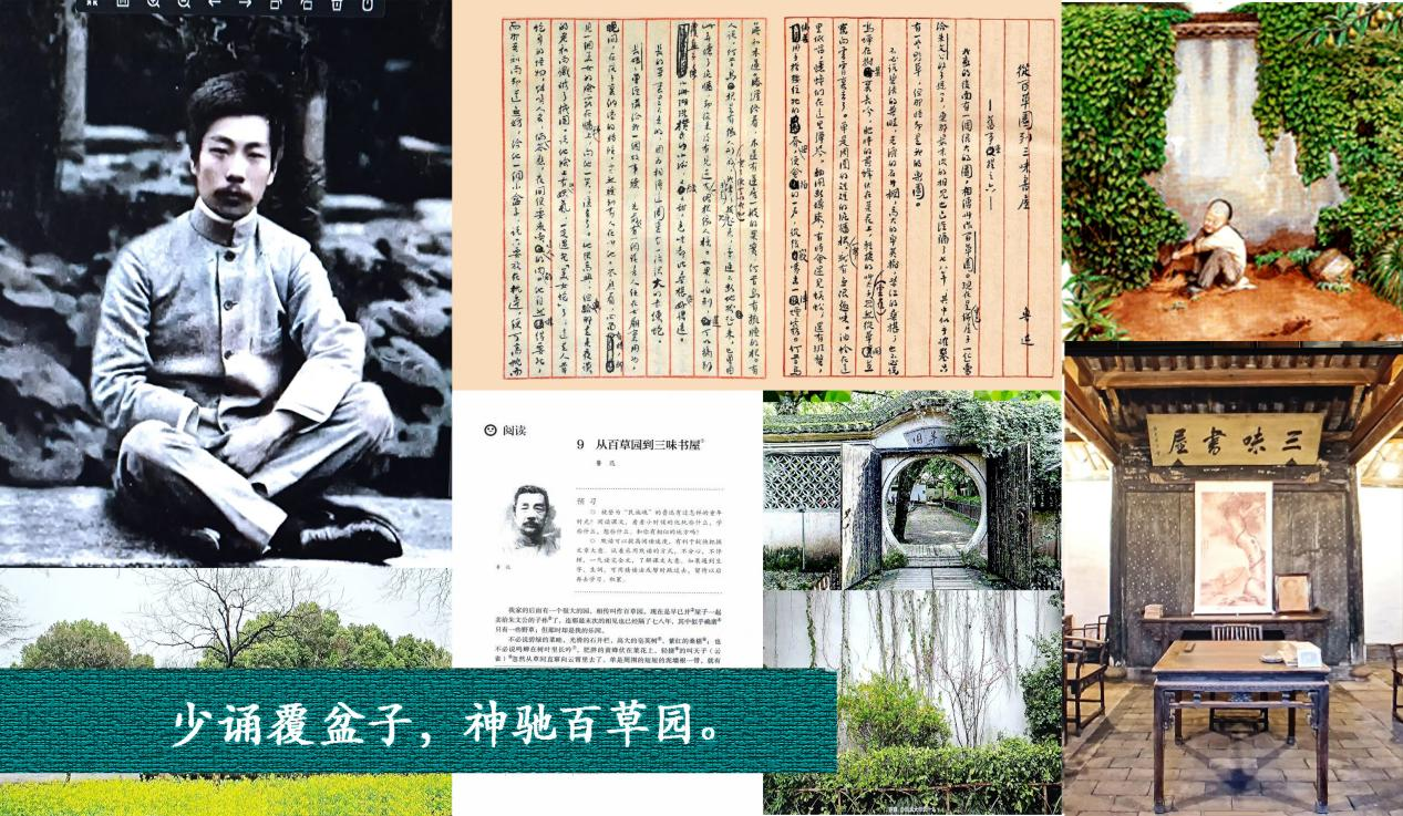 5、瑯瑯新卷帙:瑯瑯:讀書(shū)聲。卷帙[juàn zhì]:書(shū)籍或書(shū)籍的篇章。此處指連續(xù)多年入選統(tǒng)編語(yǔ)文教材的魯迅名作《從百草園到三味書(shū)屋》。筆者六十二年前讀初一下學(xué)期時(shí)就曾按老師要求背誦過(guò)此篇中描寫百草園的段落。而目前最新人教版七年級(jí)語(yǔ)文課本(上冊(cè))的第九課《從百草園到三味書(shū)屋》,教材仍規(guī)定“朗讀并背誦第二段描寫百草園的文字”。