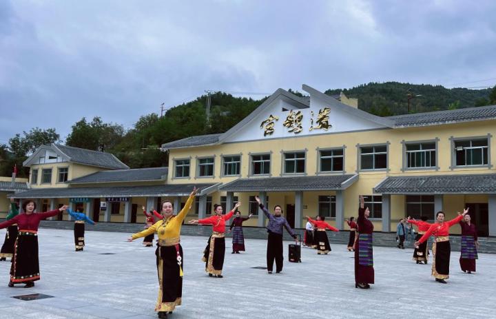 在官鵝溝大景區(qū),伴隨著當(dāng)?shù)卦瓌?chuàng)旅游歌曲《娥嫚》的旋律,游客們和身著民族服飾的表演者在山水之間載歌載舞,現(xiàn)場(chǎng)不時(shí)響起陣陣掌聲和歡呼聲。“如詩如畫的美景,獨(dú)具魅力的民族文化,歌舞聲把節(jié)日氣氛拉滿。”周敏說。