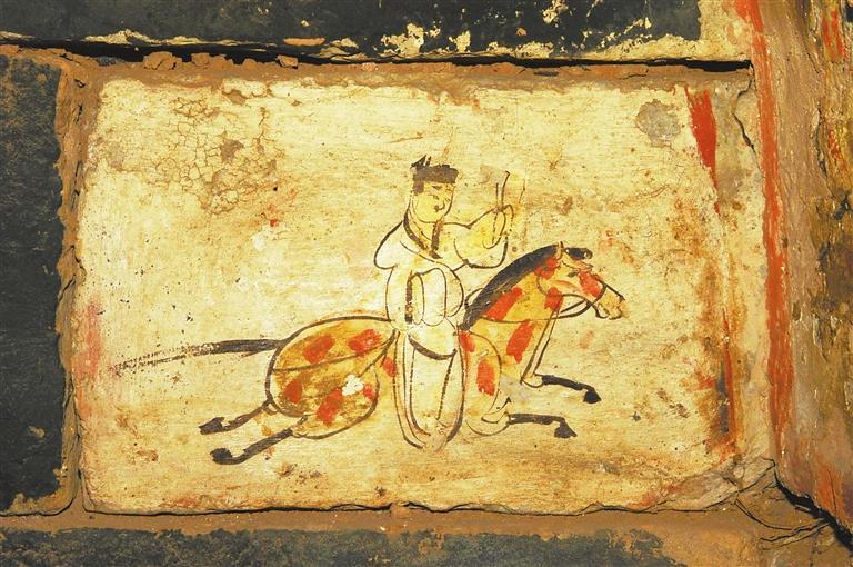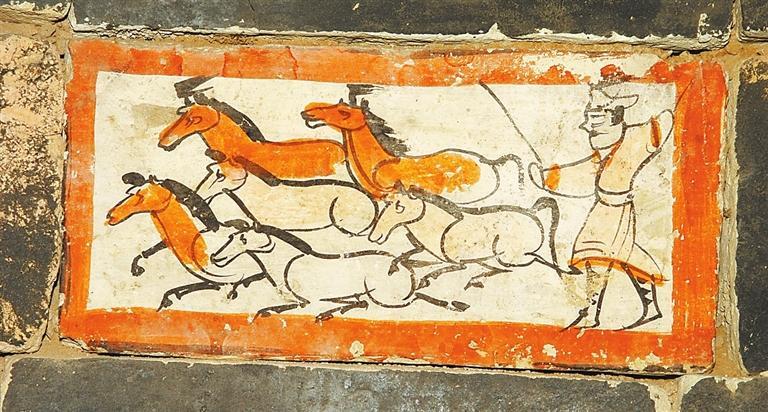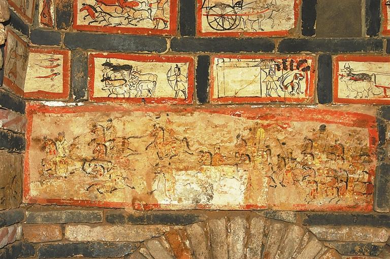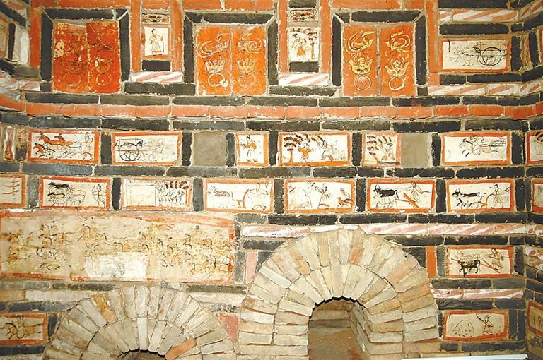 許三灣城魏晉十六國墓,20世紀90年代發(fā)掘,出土有彩繪畫像磚,有前秦建元十四年(公元378年)紀年磚。