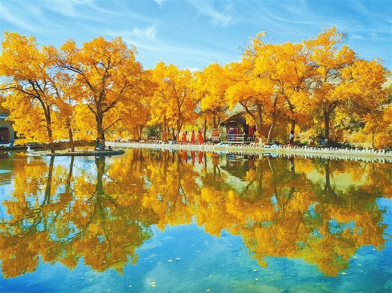 層林盡染的興隆山國家級自然保護(hù)區(qū),紅黃綠相間、滿目絢麗、美不勝收;置身在民樂縣西區(qū)公園,近可抬眼觀紅葉,遠(yuǎn)可舉目望雪山,天如洗,湖如鏡,令人心曠神怡;以壯麗胡楊林景觀聞名遐邇的阿克塞縣胡楊峽景區(qū),金黃色的葉片在陽光下閃閃發(fā)光,形成一道亮麗的風(fēng)景線;在蔚藍(lán)天空的映襯下,秋日的陽關(guān)遺址更顯雄渾肅穆;暖陽下,旅客乘坐蘭張高鐵出行,欣賞秋天饋贈的每一道風(fēng)景……