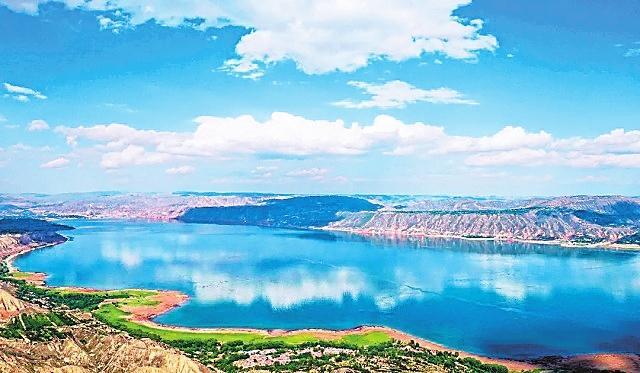 炳靈湖 雄偉的劉家峽大壩阻斷黃河,在永靖境內(nèi)聚成了一座高峽平湖。因這座湖毗鄰炳靈寺石窟和雄奇險秀的炳靈石林,故稱其為炳靈湖。整個湖水,在夏秋季呈綠色,就像一塊翡翠鑲嵌在群山之中,散發(fā)著耀眼的光芒,夏秋呈翡翠色,冬春呈藍色,由于水質(zhì)清澈,群山倒映水中,水天一色,加之湖面廣闊無垠,看上去平靜如海。但每當(dāng)劉家峽水庫泄洪的時候,磅礴的氣勢猶如蛟龍出水,翻江倒海,氣沖云天。