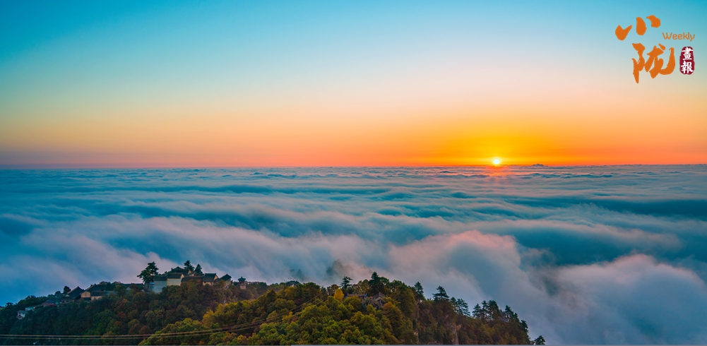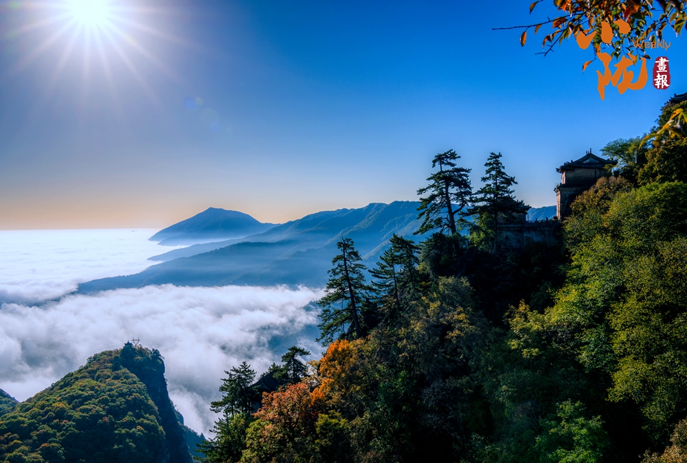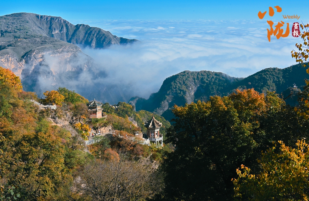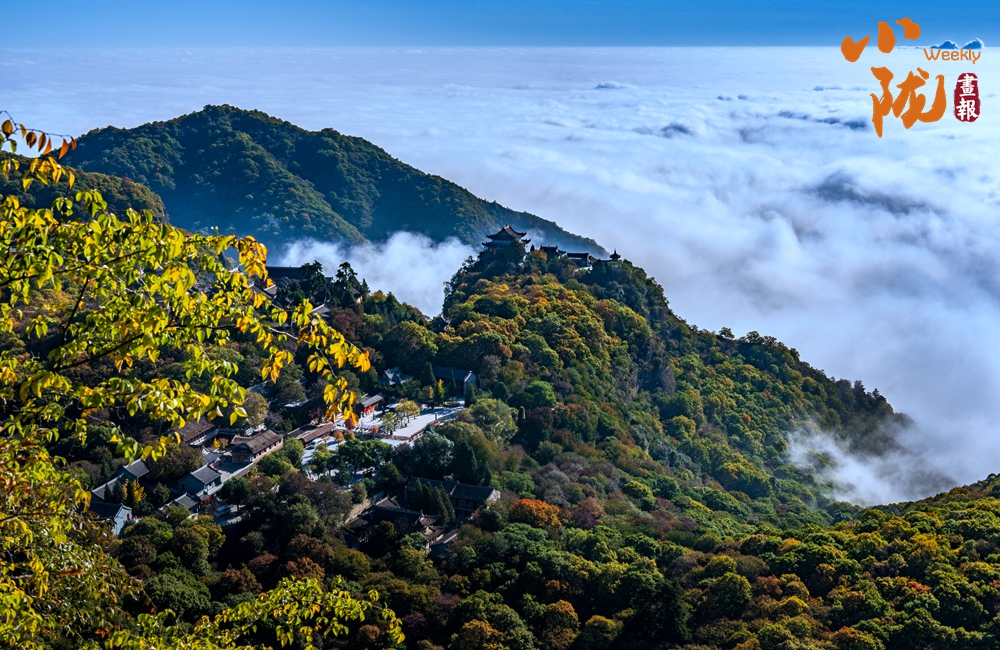 云霧繚繞,金黃的葉子似金色海洋,覆蓋山脈,在陽(yáng)光照耀下散發(fā)著溫暖光芒,仿佛為崆峒山披上了璀璨外衣。