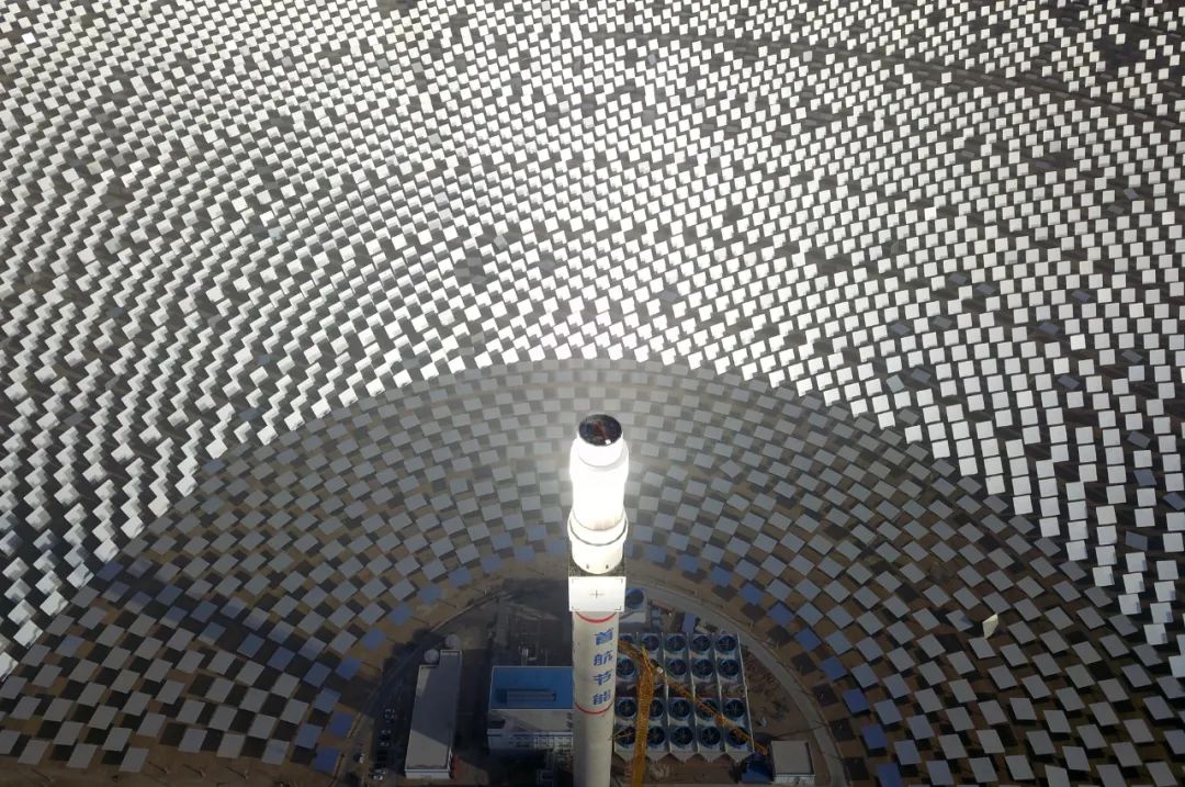 人們驚呼,這是自然力與人類智慧的完美創(chuàng)造:戈壁荒灘上“種”出了人造太陽(yáng)。這個(gè)100兆瓦熔鹽塔式光熱電站,占地面積相當(dāng)于780個(gè)足球場(chǎng),每年所生產(chǎn)的綠電可減排35萬(wàn)噸二氧化碳。