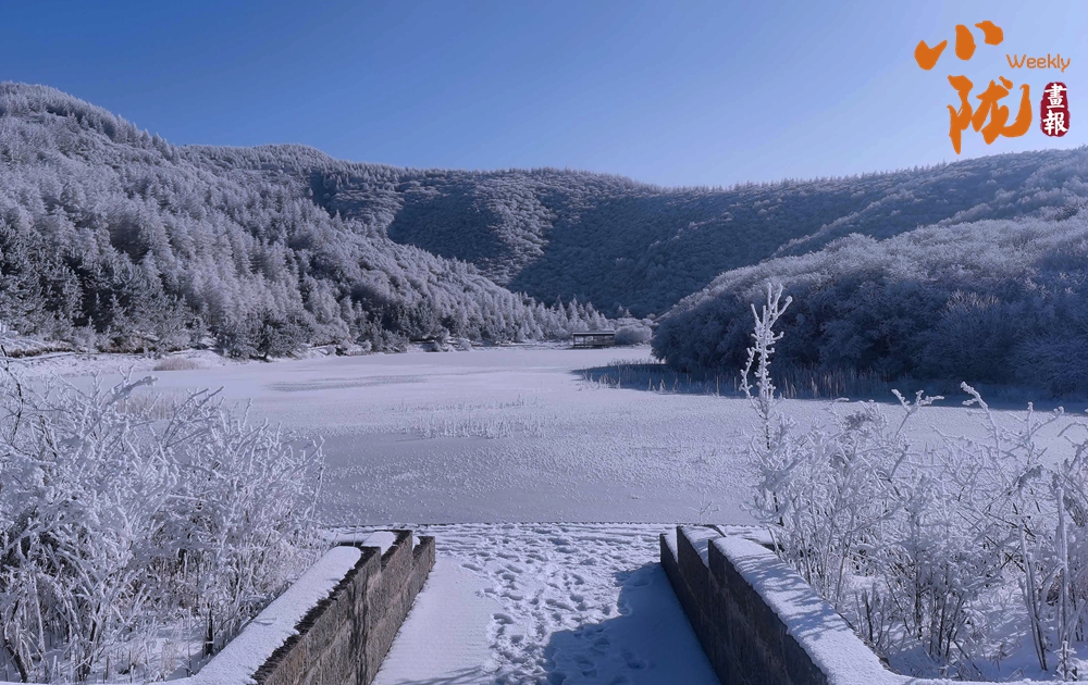 一夜飛雪,大地披上了銀裝,分外妖嬈,朝那湫在白雪的擁抱下,顯得靜謐而浪漫。