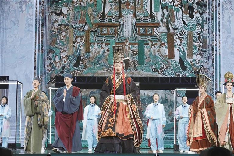 中國甘肅網(wǎng)12月10日訊 據(jù)蘭州晚報報道(記者 張鵬偉)12月7日,由中國國家話劇院院長田沁鑫擔任編劇、導演,中國國家話劇院青年演員張藝興主演的音樂話劇《受到召喚·敦煌》正式首演,國家速滑館“冰絲帶”座無虛席,觀眾借由敦煌不斷流轉(zhuǎn)的千年時空,沉浸感受華夏歷史的恢宏與廣闊,真情為中華文化的璀璨與瑰麗而自豪。