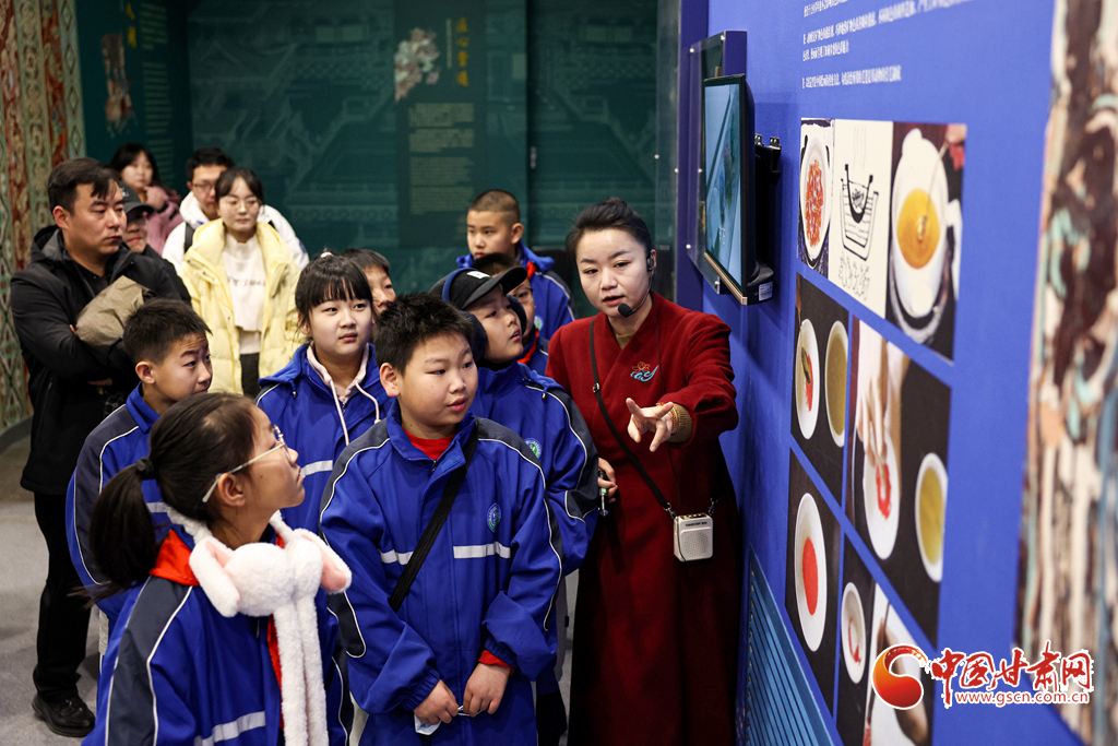12月29日,蘭州市城關(guān)區(qū)安樂村小學(xué)學(xué)生在家人的陪同下來到敦煌研究院蘭州分院敦煌藝術(shù)館,欣賞“覺色敦煌 莫高精神”敦煌石窟藝術(shù)展,在周末時(shí)光近距離感受敦煌文化藝術(shù)的魅力。