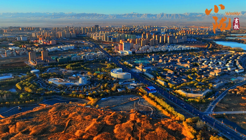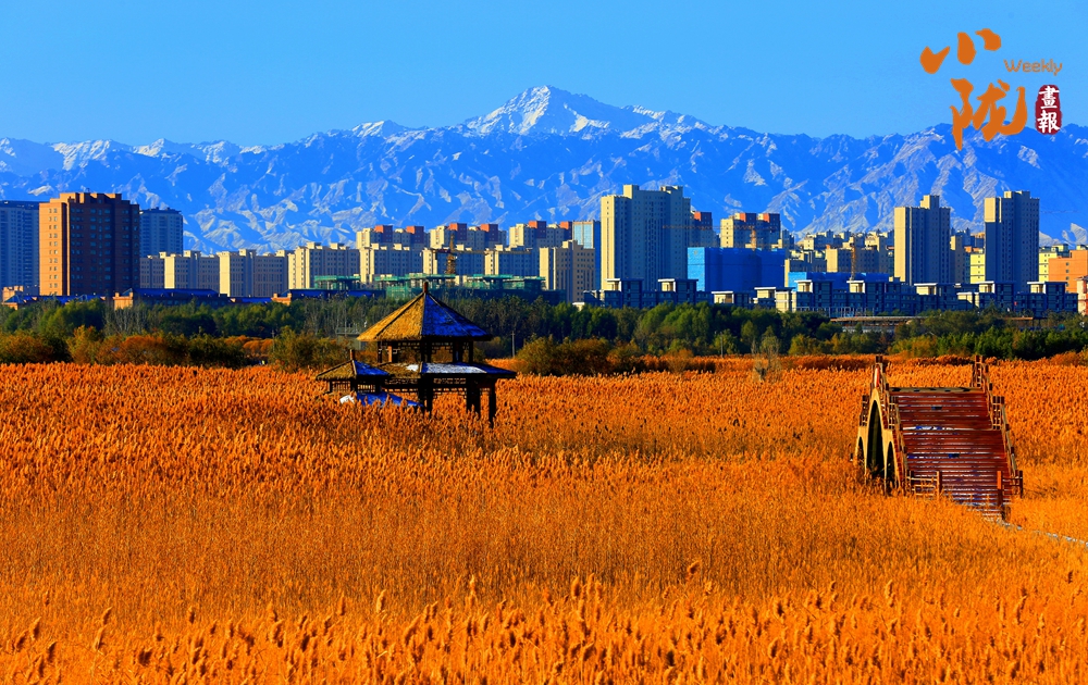 田園親昵,群樓挺拔,巍峨祁連。濕地公園里每一根蘆葦都像是一個靈動的音符,在寒風的指揮下,奏響了一曲壯麗的冬季交響樂。