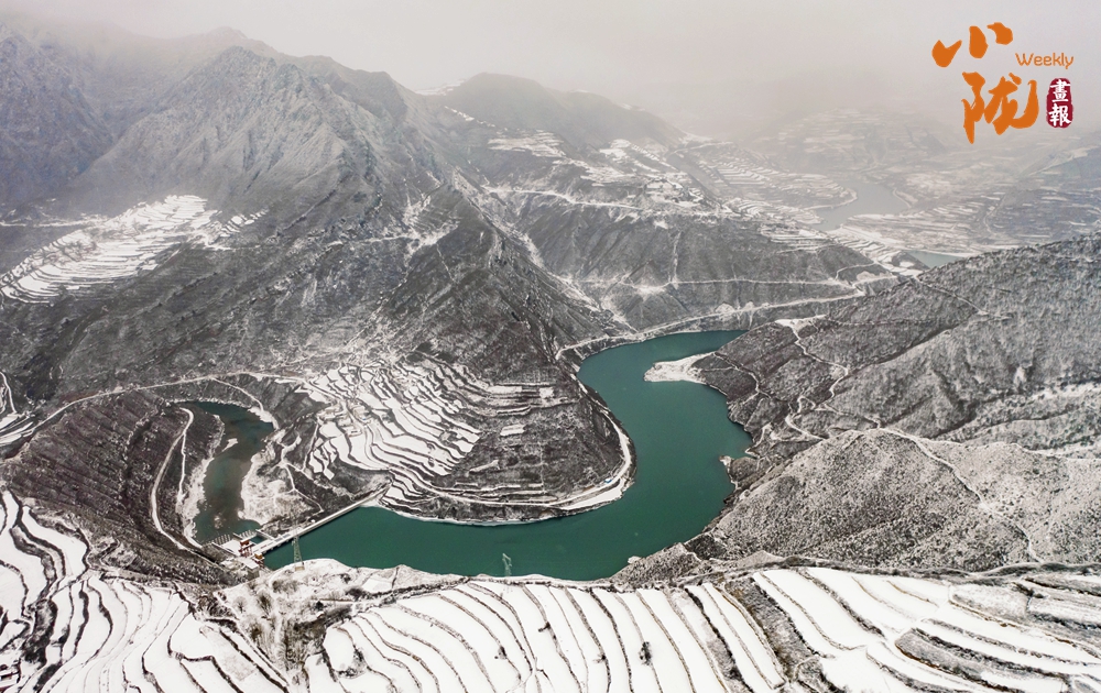 黃河上游最大支流的洮河穿境而過(guò),一路向東奔流。從高空俯瞰,大雪為洮河披上了一層華麗的銀裝,河水靜流,山巒靜止,水墨畫(huà)卷自然天成。