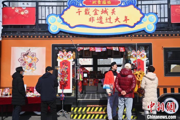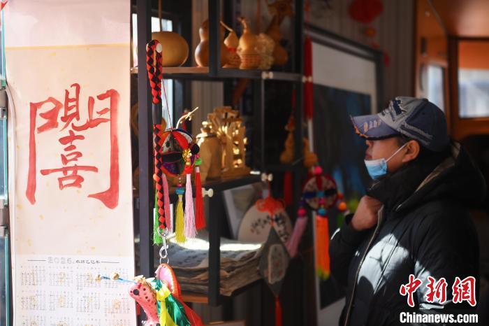 2月8日,甘肅省蘭州市城關(guān)區(qū)“非遺年貨購(gòu)物月”活動(dòng)現(xiàn)場(chǎng),游人選購(gòu)非遺文創(chuàng)產(chǎn)品。中新社記者 李亞龍 攝