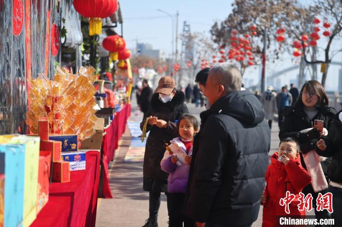 2月8日,甘肅省蘭州市城關(guān)區(qū)“非遺年貨購(gòu)物月”活動(dòng)現(xiàn)場(chǎng),游人逛街。中新社記者 李亞龍 攝