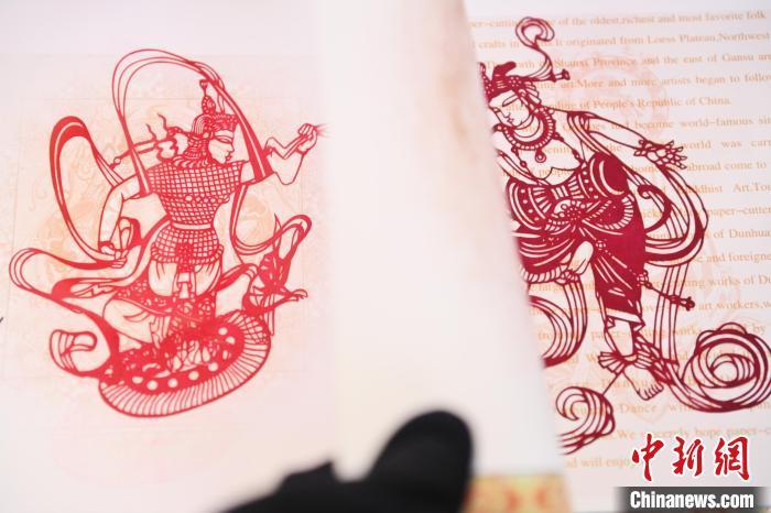 2月8日,甘肅省蘭州市城關(guān)區(qū)“非遺年貨購(gòu)物月”活動(dòng)現(xiàn)場(chǎng)展出的敦煌剪紙文創(chuàng)產(chǎn)品。中新社記者 李亞龍 攝
