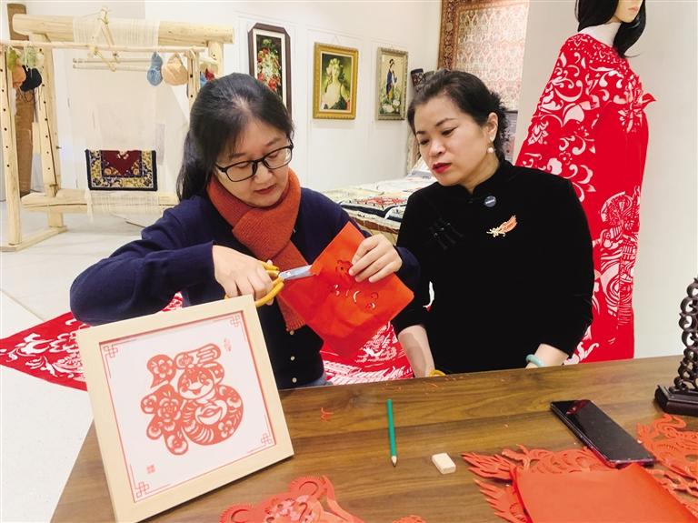 2007年,安寧剪紙被列入安寧區(qū)第一批非物質(zhì)文化遺產(chǎn)代表性項(xiàng)目名錄,2011年又成功入選蘭州市第二批非物質(zhì)文化遺產(chǎn)代表性項(xiàng)目名錄。52歲的剪紙藝術(shù)家史婷,是國家級非遺代表性傳承人。春節(jié)前夕,史婷剪紙工作室里人來人往,熱鬧非凡。她以“蛇元素”為主題,創(chuàng)作了《蛇盤兔》《雙蛇送福》等作品,還有福字、掛歷、抱枕等特色剪紙作品。一把剪刀在她的手中上下翻飛,剪出了“指尖上”濃濃的年味兒。