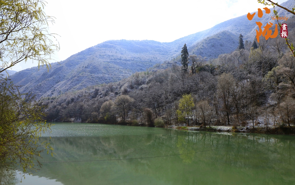 水波輕柔,湖畔柳樹發(fā)新芽。碧綠的湖水倒映著周圍山巒的美麗景色,洋溢著春的氣息。