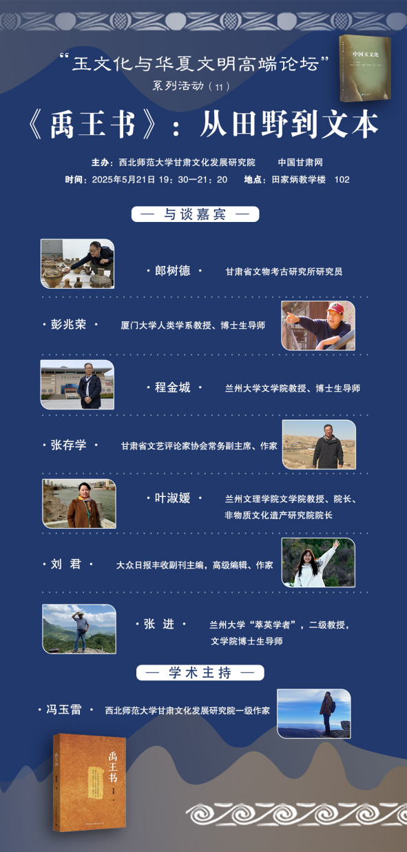 2025年5月21日,由西北師范大學(xué)甘肅文化發(fā)展研究院和中國甘肅網(wǎng)聯(lián)合主辦的玉文化與華夏文明高端論壇系列活動之“《禹王書》:從田野到文本”在西北師范大學(xué)成功舉行。