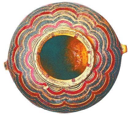 其中以馬家窯文化彩陶為代表,蘊含著眾多神秘的社會文化信息,以線條作為造型手段、以黑色(墨色)作為主要基調(diào),奠定了中國畫發(fā)展的歷史基礎(chǔ)與以線描為特征的基本形式。馬家窯文化彩陶也是中國音樂舞蹈的開端呈現(xiàn)。1973年,甘青地區(qū)大通縣出土的馬家窯文化彩陶舞蹈紋盆,內(nèi)壁繪舞蹈人物3組,每組5人,令人感受到遠古舞蹈強烈的節(jié)奏感。1991年,甘肅武威市發(fā)現(xiàn)的彩陶舞蹈紋盆,內(nèi)壁繪有兩組手拉手的舞蹈人物,每組9人,舞蹈人數(shù)更多。1995年,宗日遺址再次出土一件馬家窯文化彩繪舞蹈紋盆,內(nèi)壁所繪舞蹈人物兩組,分別為11人和13人,給人一種優(yōu)雅的舞蹈意境。1986年,甘肅省永登縣出土馬家窯文化的彩陶鼓。這些珍貴的彩陶器物成為研究中國原始歌舞和音樂起源的佐證。