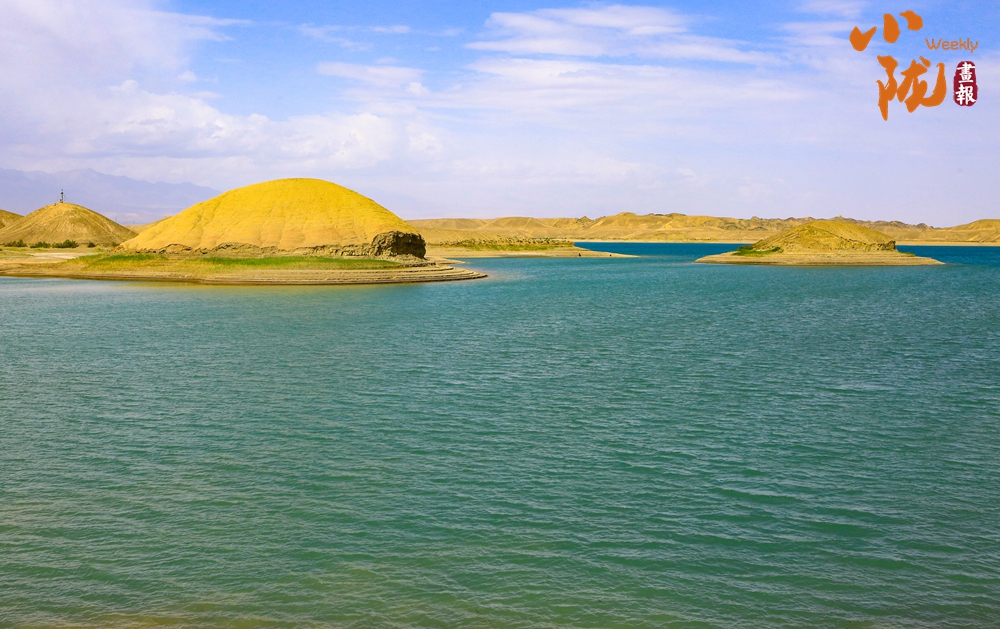 站在湖畔俯瞰,波光粼粼的湖面與頑強生長的植被、和那湖水中的山丘相映成趣。這山丘并非尋常之物,它們是歲月與風霜共同雕琢而成的藝術品,它們猶如戈壁的眼睛,見證著千年的滄桑變遷,訴說著這片土地不為人知的故事。