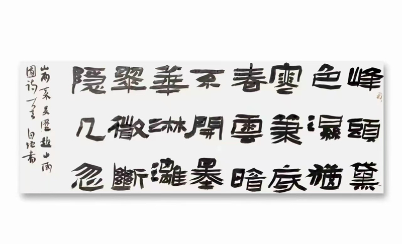 王自強(qiáng)的隸書植根于《西狹頌》的金石氣,又融入個(gè)人創(chuàng)新。他的作品《李白古風(fēng)其一》在2021年“中國(guó)書法·年展”中脫穎而出,以古樸厚重的筆法、靈動(dòng)多變的章法,位列全國(guó)前51名,成為成縣首位躋身國(guó)家級(jí)書法大展的藝術(shù)家。2025年,他的隸書作品再次入選全國(guó)第五屆隸書作品展,在15214件投稿中脫穎而出,展現(xiàn)出對(duì)漢隸藝術(shù)的深刻理解與創(chuàng)新表達(dá)。