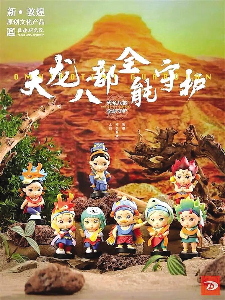 盲盒的設(shè)計(jì)取自敦煌莫高窟壁畫,特指佛經(jīng)中的八種神道怪物,和金庸的小說《天龍八部》也有人物對(duì)照。盲盒包括迦樓羅、乾闥婆、夜叉、摩睺羅伽、帝釋天、緊那羅、阿修羅、那伽八大護(hù)法神形象。這也是繼故宮、河南博物院、三星堆博物館之后,敦煌研究院又推出盲盒。