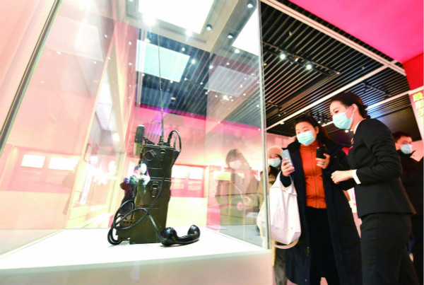 日前,“紅色電波中的領(lǐng)袖風范——毛澤東同志香山時期發(fā)布電報手稿”專題展覽在北京香山革命紀念館舉行。圖為觀眾在觀看拍攝展出的電臺。(圖片來源:人民視覺)