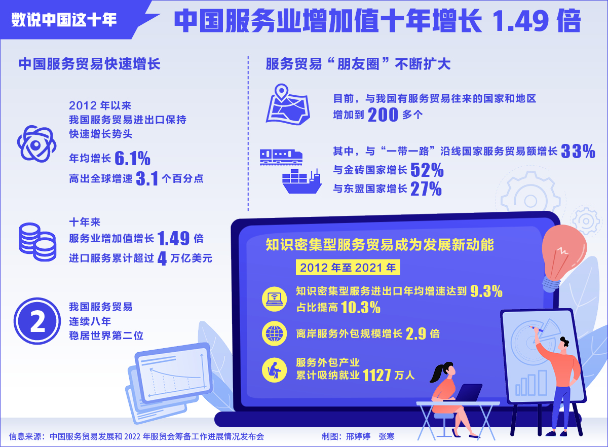 數(shù)說中國這十年丨中國服務(wù)業(yè)增加值十年增長1.49倍