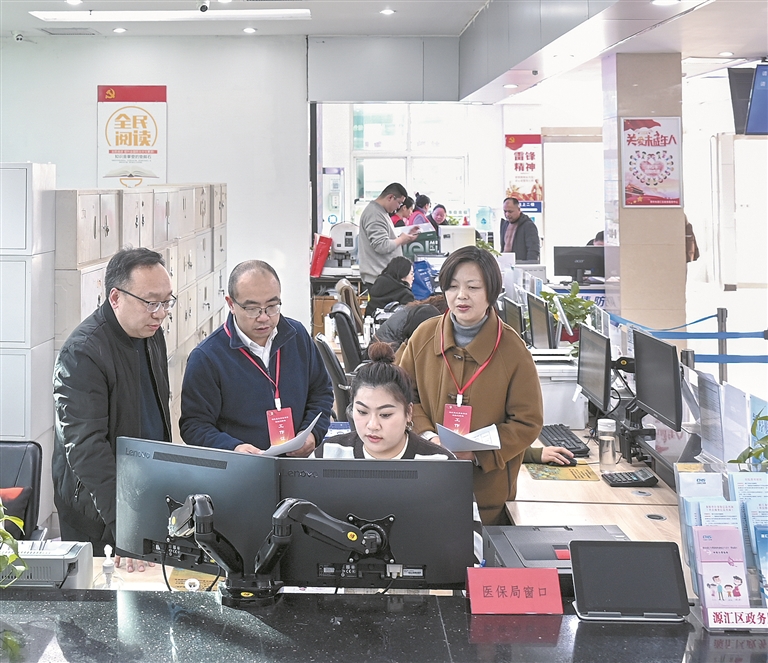 河南省漯河市源匯區(qū)紀(jì)委監(jiān)委聚焦醫(yī)保基金安全運(yùn)行等關(guān)鍵環(huán)節(jié)開展專項(xiàng)整治,督促主管部門著力整治醫(yī)保基金管理中虛報冒領(lǐng)、騙取套取等違紀(jì)違法行為,嚴(yán)肅查處監(jiān)管失職失責(zé)及背后的不正之風(fēng)和腐敗問題。圖為近日,該區(qū)紀(jì)委監(jiān)委工作人員到區(qū)行政服務(wù)中心醫(yī)保局窗口走訪核實(shí)相關(guān)情況。尤亞輝 攝