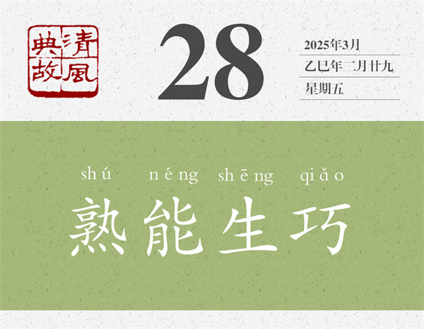陳堯咨的射術不是不高,但用“無他,但手熟爾”來評價,給人的感覺是輕飄飄的;賣油翁往葫蘆里倒油的技術也不是不高,但賣油翁自己也說是“我亦無他,惟手熟爾”。在這個故事后面,歐陽修還說了一句話:“此與莊生所謂解牛、斫輪者何異?”“‌‌解牛”即“庖丁解牛”,“斫輪”即“輪扁斫輪”,前者即典故“游刃有余”之源,后者即典故“得心應手”之源。意思是,這些并不神秘,都是“惟手熟爾”。后人即以“熟能生巧”為典,形容實踐多了,自然就能找到竅門,產生出巧妙的辦法,干起事來就能隨心所欲。董必武的詩《次稚天韻》:“會者不難終要學,熟能生巧豈徒詩。”