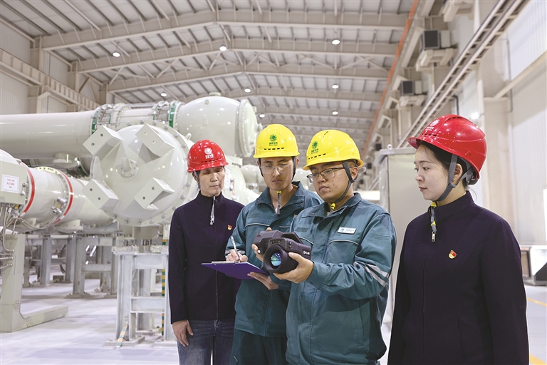 國(guó)網(wǎng)寧夏電力有限公司紀(jì)委以有力監(jiān)督推動(dòng)“寧電入湘”特高壓線路工程投運(yùn)后各項(xiàng)工作平穩(wěn)有序推進(jìn)。圖為近日,該公司紀(jì)委工作人員在國(guó)網(wǎng)寧夏超高壓公司中寧換流站開展現(xiàn)場(chǎng)監(jiān)督檢查。王天鵬 攝