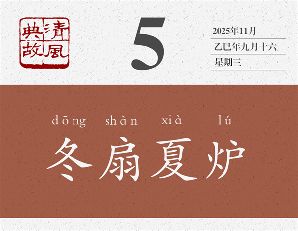 以冬進爐,以夏奏扇,明明是違背常識的事,為什么還有人喜歡做呢?所以,后世即以“冬扇夏爐”為典,形容一個人的言論或行動不合時宜,不切實際。清人張祥齡《詞論》:“左春右秋,冰蟲之見,生今反古,是冬箑(shà)夏爐,烏乎能。”箑,扇子。揚雄《方言》:“自關(guān)而東謂之箑,自關(guān)而西謂之扇。”