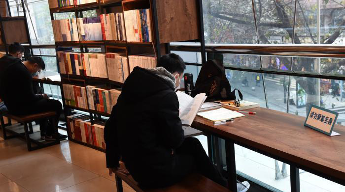 資料圖:圖為重慶書城恢復(fù)營業(yè),市民戴著口罩閱讀。 周毅 攝
