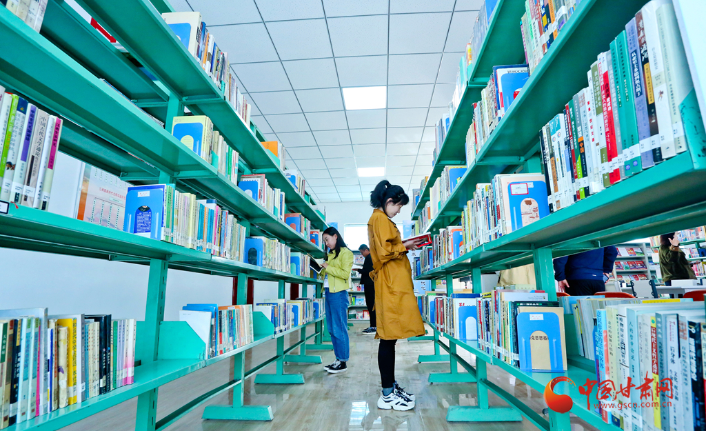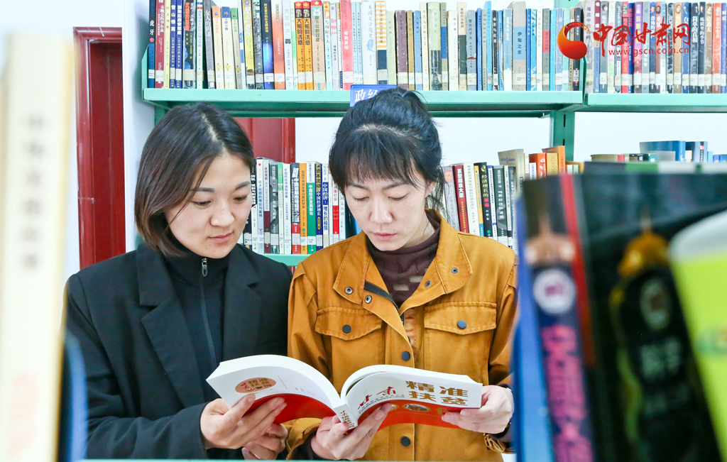 4月21日,甘肅張掖甘州區(qū)三閘鎮(zhèn)農(nóng)家書(shū)屋內(nèi)鄉(xiāng)村干部在挑選自己喜愛(ài)的書(shū)籍。