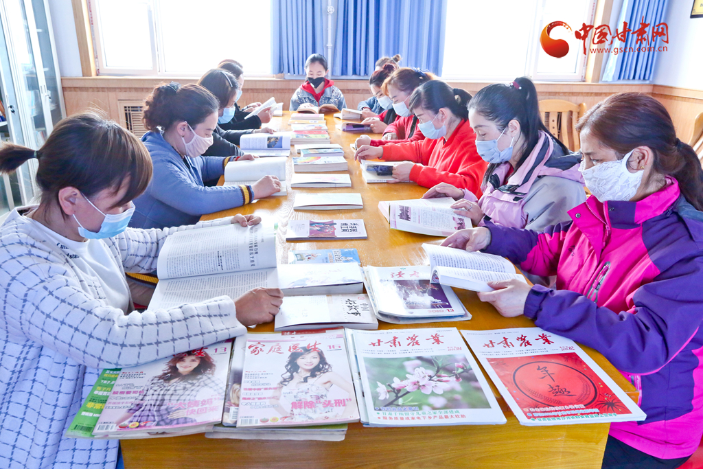 4月21日,甘肅張掖甘州區(qū)火車(chē)站街道下安村農(nóng)家書(shū)屋內(nèi)農(nóng)戶(hù)們?cè)陂営[室里看書(shū)。