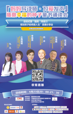 在國家新聞出版署指導(dǎo)下,由中國新聞出版?zhèn)髅郊瘓F、首都圖書館聯(lián)合央視頻、騰訊新聞、喜馬拉雅、云聽、當(dāng)當(dāng)網(wǎng)、未來網(wǎng)、快手等平臺主辦的“媽媽導(dǎo)讀師·為愛發(fā)聲”播撒幸福的種子童書誦讀會在世界讀書日當(dāng)天啟動,啟動式以“提高閱讀力,規(guī)劃孩子的閱讀人生”直播分享會的形式進(jìn)行。分享會上,嘉賓們圍繞“讀什么、怎么讀、讀懂書、從讀故事到編故事、成為閱讀達(dá)人”5個話題展開討論,希望能夠引導(dǎo)家庭重視親子閱讀,調(diào)動兒童閱讀的積極性、培養(yǎng)其閱讀習(xí)慣、教會其閱讀方法,促使其提高閱讀能力。