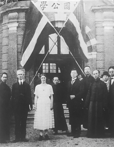 羅素(前排左二)與趙元任(后排右一)等人合影。