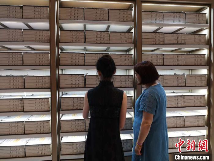 中新網(wǎng)杭州6月18日電(童笑雨) 古色古香的木質(zhì)外包,干凈整潔的手工印刷,6月18日,線裝全套文淵閣《四庫全書》在浙江杭州展出。據(jù)相關(guān)負(fù)責(zé)人介紹,該套叢書將對民眾免費(fèi)開放,各界人士均可來“西湖會客廳”閱讀、研究。
