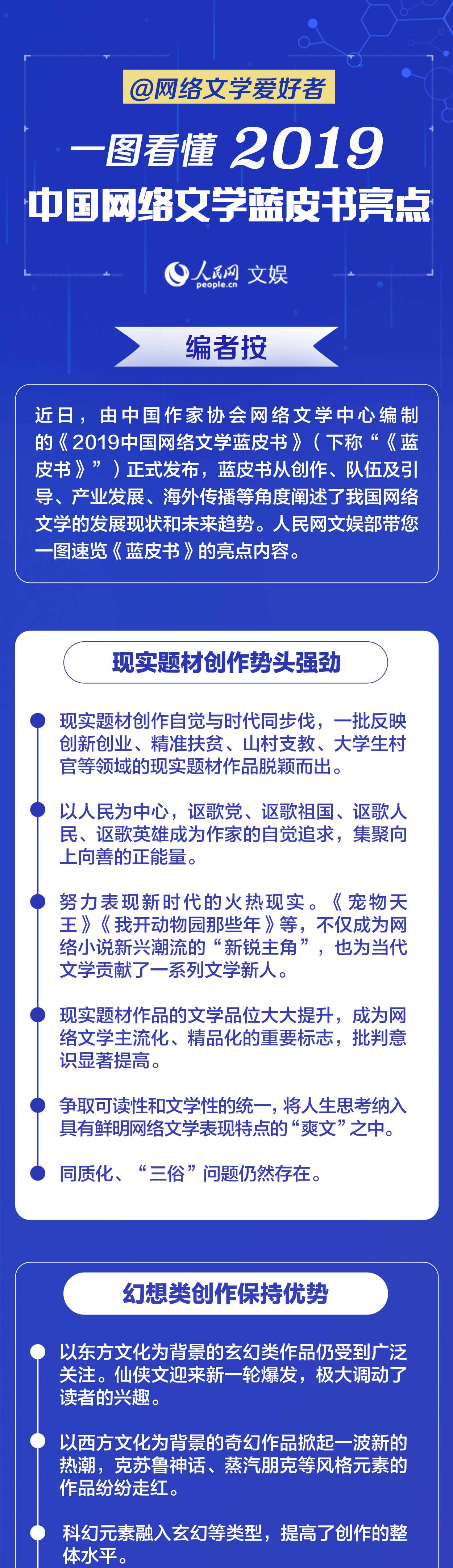 @網(wǎng)絡(luò)文學(xué)愛(ài)好者 一圖看懂2019中國(guó)網(wǎng)絡(luò)文學(xué)藍(lán)皮書(shū)亮點(diǎn)