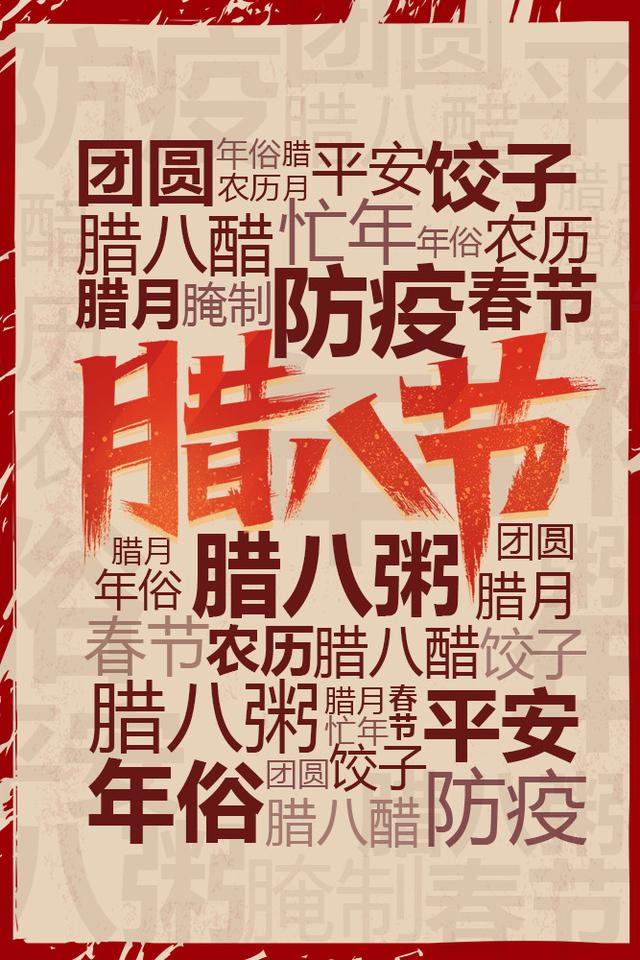 關(guān)于“臘八”的關(guān)鍵詞中,臘八節(jié)、臘八粥、平安、團(tuán)圓、年俗、春節(jié)、餃子、臘八醋、防疫等成為了網(wǎng)民熱議較多的詞匯。
