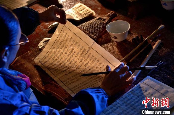 中新網(wǎng)成都11月16日電 (唐倩)戴著一副老花眼鏡,袁東玨坐在修補(bǔ)臺(tái)旁,臺(tái)面上平鋪著一疊泛黃殘損的書頁(yè),彎彎曲曲滿是蟲蛀痕跡,一張張粘連在一起,這是一部清代年間的族譜,蟲蛀很嚴(yán)重。她很小心地揭起一頁(yè)布滿蛀洞的古籍,輕輕展開,有的地方緊緊粘在一起,她用一把竹子磨制的起子輕輕挑開。