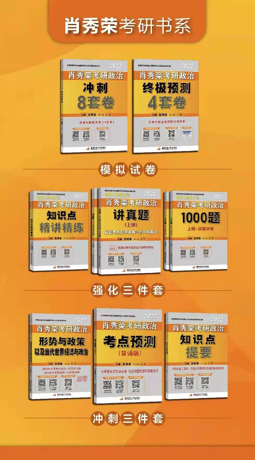 由國家開放大學(xué)出版社出版的“2022肖秀榮考研政治書系”作為研究生入學(xué)考試政治科目輔導(dǎo)資料,嚴(yán)格按照馬克思主義理論研究和建設(shè)工程重點教材和考研大綱編寫,秉持思想政治理論教育的基本理念,承接深化大學(xué)生思想政治理論教育任務(wù),輔助服務(wù)研究生教育培養(yǎng)計劃。