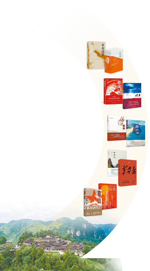 書影圖片從上至下依次為《鄉(xiāng)村國是》《人世間》《牽風記》《北上》《海邊春秋》《經山海》《云中記》《革命者》《為什么是深圳》《靠山》。資料圖片