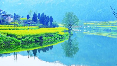 四川省德陽(yáng)市雙東鎮(zhèn)凱江河畔菜花黃。尹文忠攝