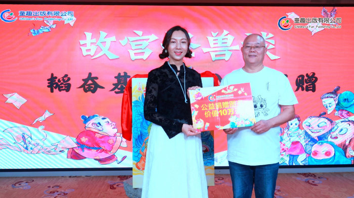 分享會(huì)上,童趣出版有限公司向韜奮基金會(huì)捐贈(zèng)了《故宮怪獸談》及世界名著等價(jià)值10萬(wàn)碼洋的作品。插畫(huà)師譚諾專門為韜奮基金會(huì)創(chuàng)作了公益閱讀畫(huà)作,永久免費(fèi)授權(quán)韜奮基金會(huì)作為公益宣傳使用。